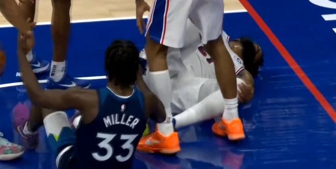 震撼回归!恩比德复出首战14+7+8,摔倒后小腿发软令人担忧!